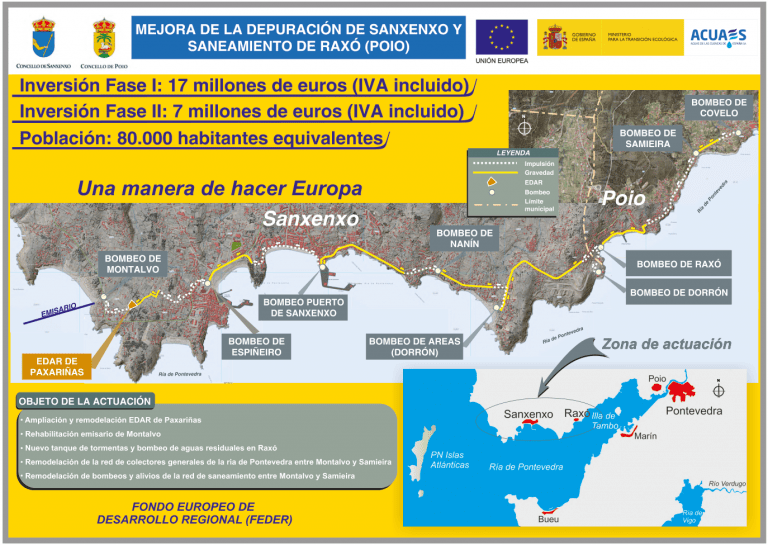 Un acordo histórico entre o Goberno de España, o Concello de Poio e o Concello de Sanxenxo permitiu a depuración integral do lado norte da Ría, despois de que a Xunta de Galicia fora incapaz de asumir as súas competencias e executar unha infraestrutura tan necesaria para os veciños de Poio. Temos moi presentes as mentiras e manipulacións do Sr. Moldes, que insistía na ubicación da EDAR en Samieira, ao tempo que responsabilizaba ao Concello dunha situación que debía resolver a Xunta. Fomos quen de acordar co alcalde de Sanxenxo unha actuación beneficiosa para ambos concellos e, sobre todo, para a calidade das augas da Ría. Agora agardamos que a Xunta sexa quen de afrontar a mellora da depuradora de Praceres. Unha vez se demostra que cando se quere resolver un problema, se aborda con decisión e sen escusas. Buscando consensos, resolvemos un problema ante a incapacidade do PP de facer nada. Quedou patente quen é o que tenta enganar aos veciños e quen somos os que defendemos o interese xeral da cidadanía.